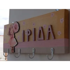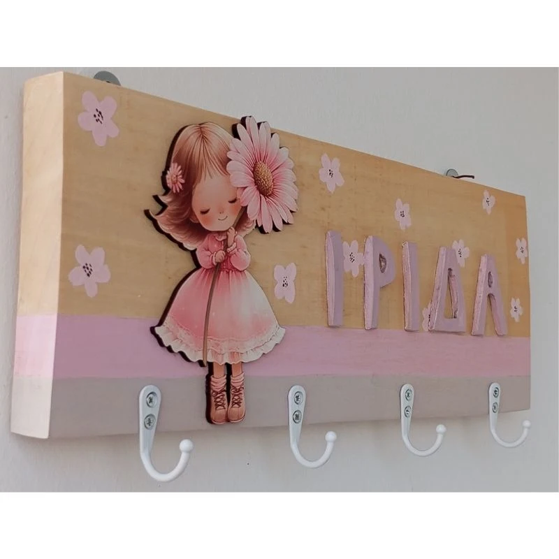 Παιδική κρεμάστρα τοίχου για κορίτσι με θέμα κορίτσι με λουλούδι.