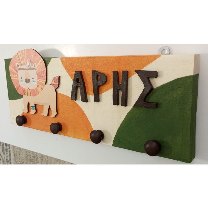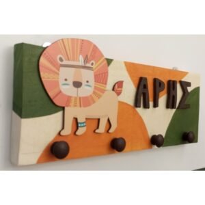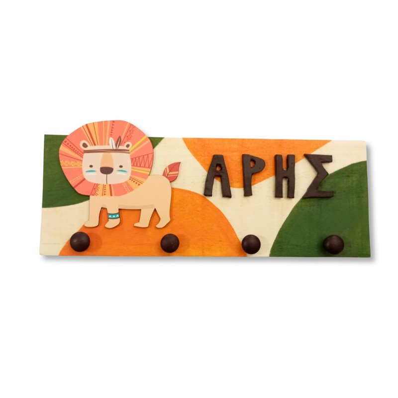Παιδική κρεμάστρα τοίχου με όνομα για αγόρι με θέμα λιονταράκι.