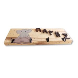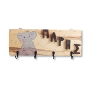 Παιδική κρεμάστρα τοίχου με όνομα για αγόρι ή κορίτσι με θέμα ελεφαντάκι.