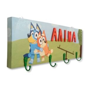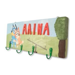 Παιδική κρεμάστρα τοίχου με όνομα για αγόρι ή κορίτσι με θέμα Μπλούι.