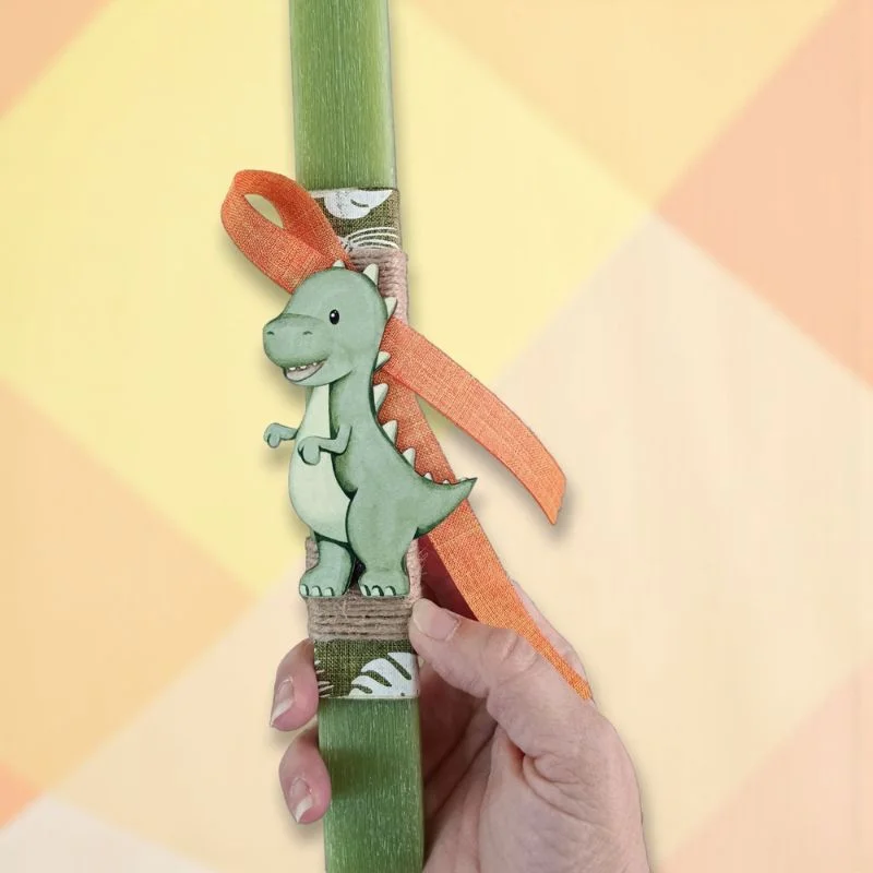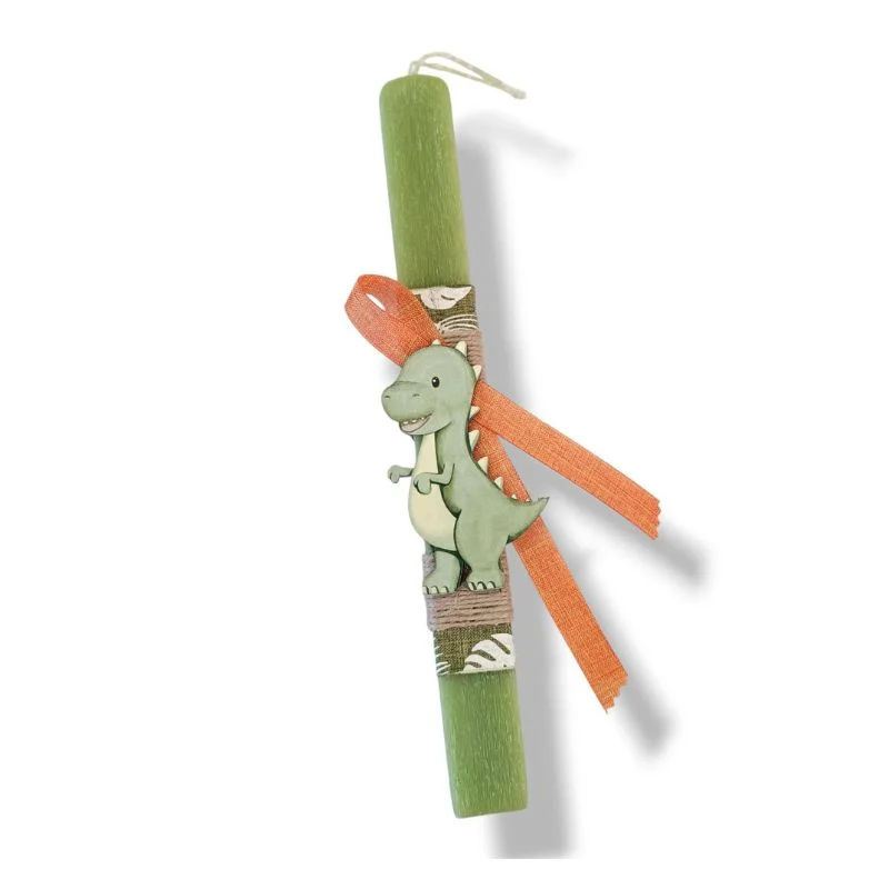 Παιδική λαμπάδα, πράσινη με δεινοσαυράκι.