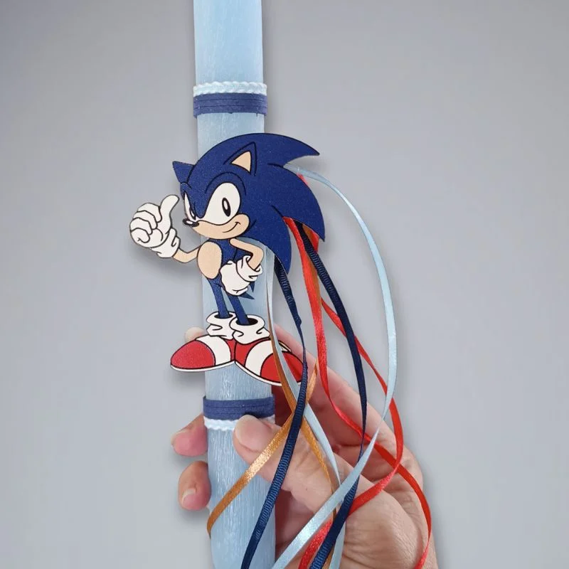 Παιδική λαμπάδα σιέλ με το μπλε σκατζοχοιράκι.
