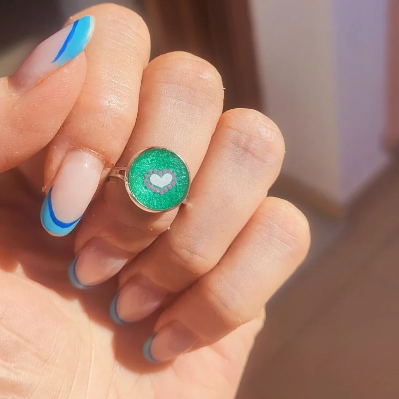 Δαχτυλίδι από υγρό γυαλί διαμέτρου 10mm με ρυθμιζόμενο κλείσιμο κατάλληλο για κορίτσια.