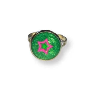 Πράσινη βάση με αυτοκόλλητο αστεράκι ροζ.