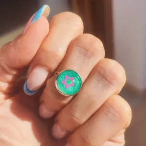Δαχτυλίδι από υγρό γυαλί διαμέτρου 10mm με ρυθμιζόμενο κλείσιμο κατάλληλο για κορίτσια.