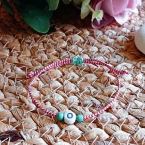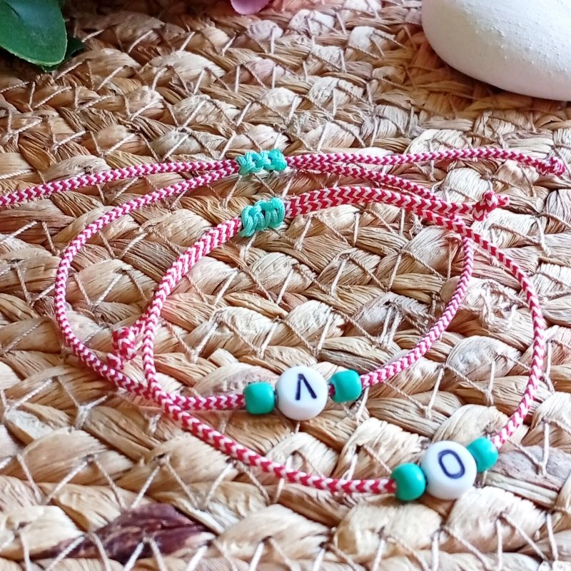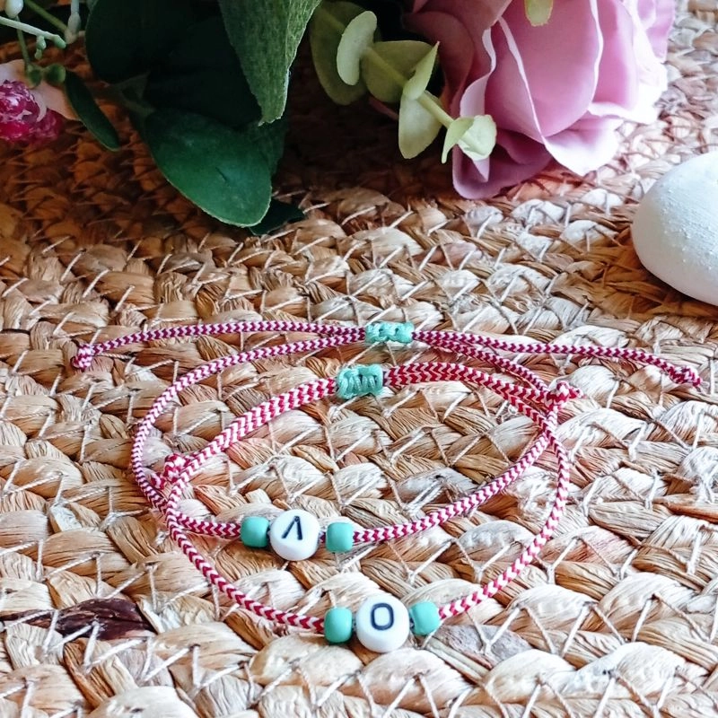 Παιδικό βραχιόλι μαρτάκι με χάντρα-γράμμα και τυρκουάζ κοντερίες.