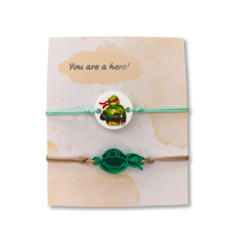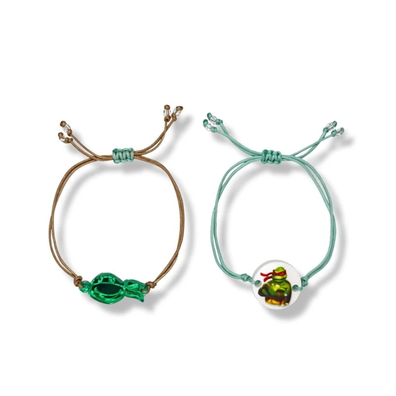 Παιδικά βραχιολάκια με στοιχεία plexiglass με παιδικούς ήρωες χελωνάκια. Το βραχιόλι μπορεί να προσαρμοστεί και σε μικρά χεράκια, αλλά και μεγαλύτερα, καθώς είναι αυξομειούμενο.