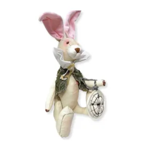 Ο κούνελος έχει ύψος 30 cm, χωρίς να συμπεριλαμβάνεται το μήκος των αυτιών, φοράει γιλέκο, κολάρο και κρατάει ένα υφασμάτινο ρολόι vintage. Τα χέρια και τα πόδια του είναι στερεωμένα με ξύλινα κουμπιά, επιτρέποντάς του να στέκεται όρθιος αλλά και να κάθεται. Ιδανικός για παιχνίδι και διακόσμηση, συνδυάζει το χαριτωμένο σχέδιο με την πρακτικότητα ενός παιχνιδιού.