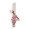 Πασχαλινή λαμπάδα σε minimal και ρομαντικό ύφος, διακοσμημένη με αποξηραμένα λουλούδια σε απαλές ροζ και λιλά αποχρώσεις.