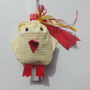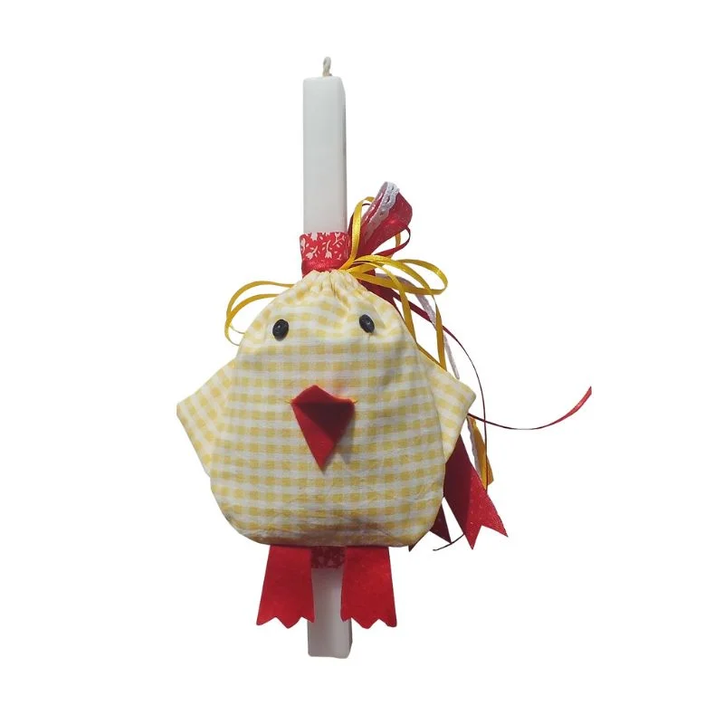 Πασχαλινή λαμπάδα με υφασμάτινο πουγκί κοτοπουλάκι. Είναι χειροποίητο από βαμβακερά υφάσματα και εσωτερικά φοδραρισμένο.