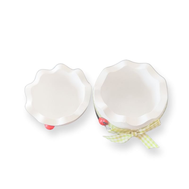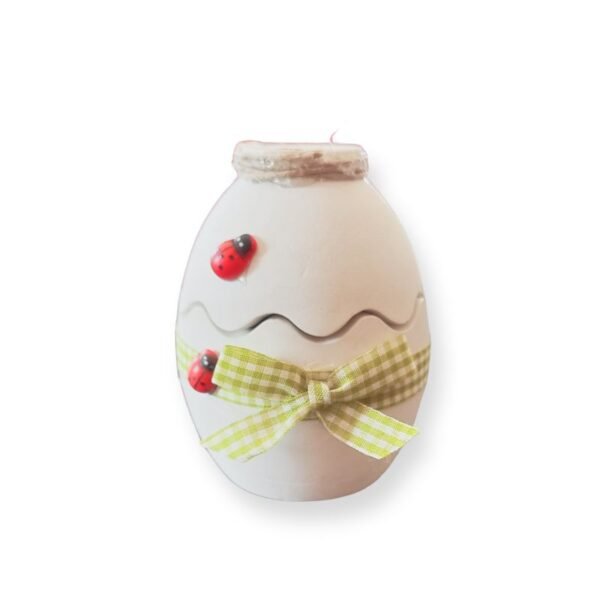 Αυγό Πασχαλινό από πορσελάνη, στολισμένο με πασχαλίτσες και φιογκάκι.