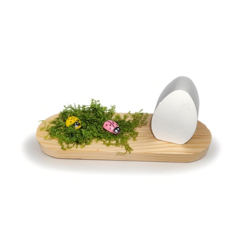 Ξύλο διαμέτρου 11 εκ. με πασχαλινό αυγό από πορσελάνη με τεχνητή βρύα και πασχαλίτσες