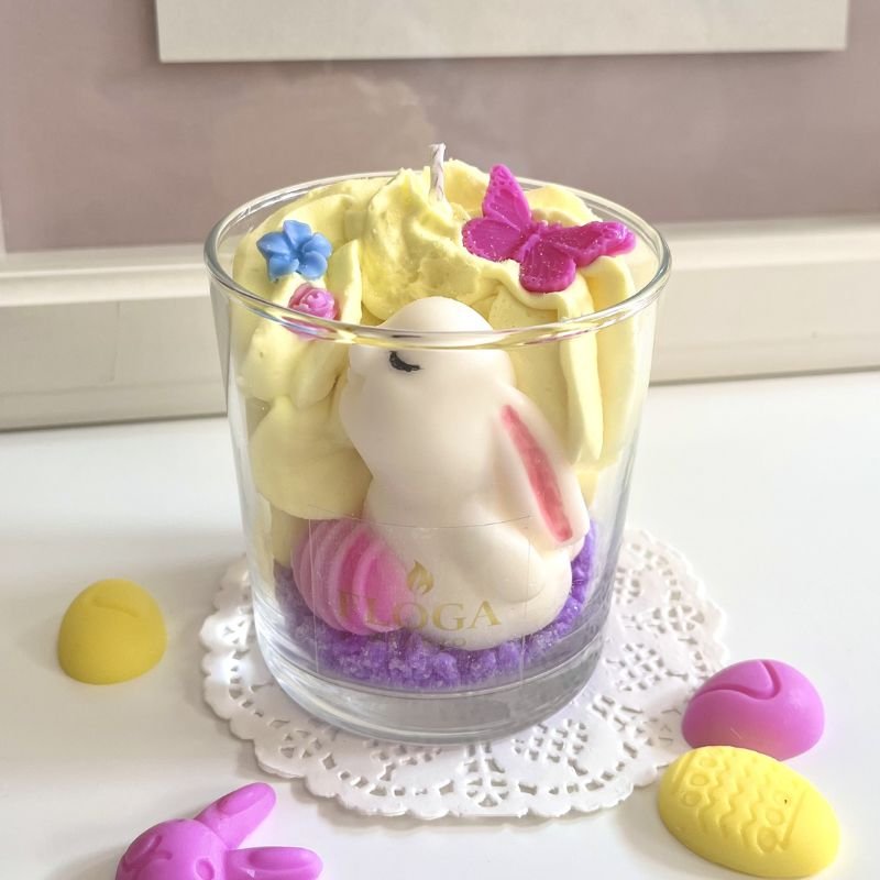 Πασχαλινό κερί με χαριτωμένο λαγουδάκι σε ποτήρι