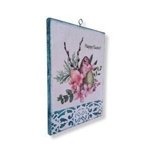 Αυγά πασχαλινά σε ξύλινο κάδρο με μεταλλικό γαντζάκι. Η δημιουργία του έγινε με ακρυλικά χρώματα και την τεχνική ντεκουπάζ.