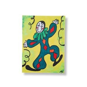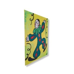 Αρλεκίνος ζωγραφισμένος με ακρυλικά χρώματα σε καρτολίνο, με μεταλλικό γαντζάκι για να κρεμαστεί.