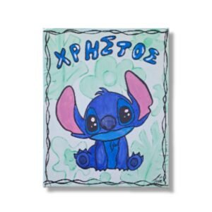Ο αγαπημένος παιδικός ήρωας Stitch ζωγραφισμένος σε καμβά με τη χρήση ακρυλικών χρωμάτων. Μπορεί να γραφτεί το όνομα του παιδιού για το οποίο προορίζεται.