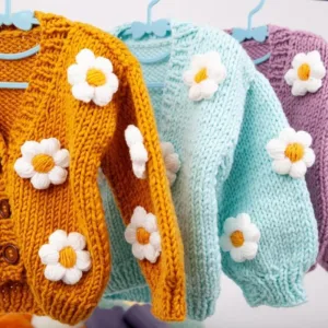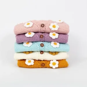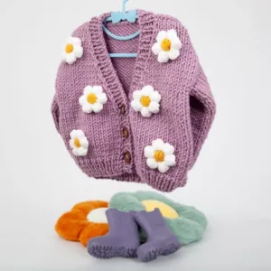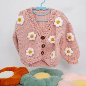 Ζακετούλες με πολύ μαλακή πλέξη και λουλουδάκια που μπορούν να συνδυαστούν με ασορτί μαξιλαράκια της σελίδας. Δωράκι ιδανικό για γενέθλια και βάπτιση.