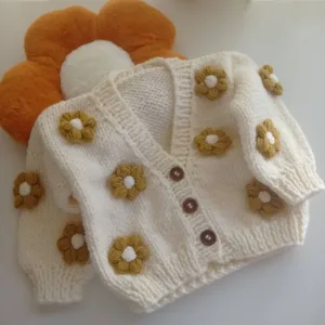 Πλεκτή ζακετούλα με λουλουδάκια για κοριτσάκια