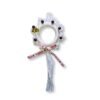 Πλεκτό χειροποίητο γούρι Κρίκος τύπου Χριστουγεννιάτικο στεφανάκι με μεταλλικό στοιχείο ”Καλή Χρονιά” και φιογκάκι κορδέλα.