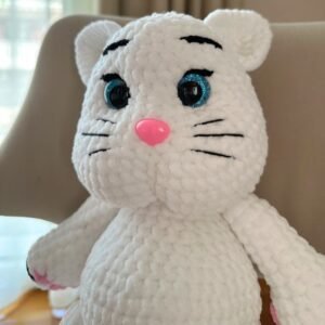 Αυτό το γλυκύτατο πλεκτό γατάκι είναι φτιαγμένο για ατελείωτο παιχνίδι, χαμόγελα και πολλές αγκαλιές! Με μακριά χεράκια και ποδαράκια, πλεγμένο στο χέρι με απαλά, βελούδινα νήματα, είναι το τέλειο φιλαράκι για κάθε μικρούλη.
