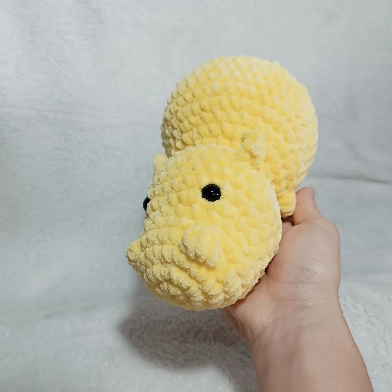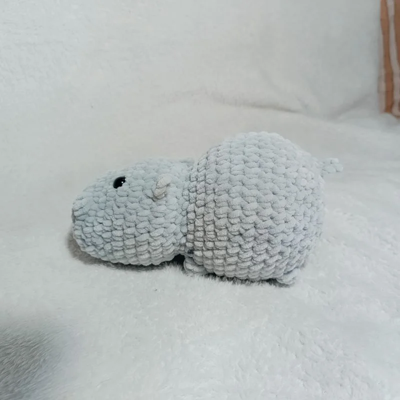 Χειροποίητο πλεκτό βελούδινο παιχνίδι ιπποπόταμος.