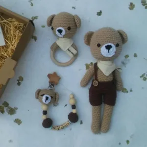 - Ένα πλεκτό αρκουδάκι που θα μπορεί να παίζει έως και 3 ετών.