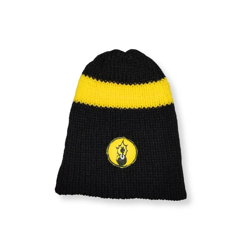 Χειροποίητο πλεκτό κιτρινόμαυρο σκουφάκι με κεντητό σήμα μπόμπα (Original).