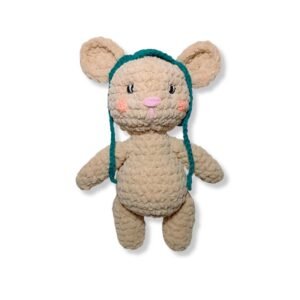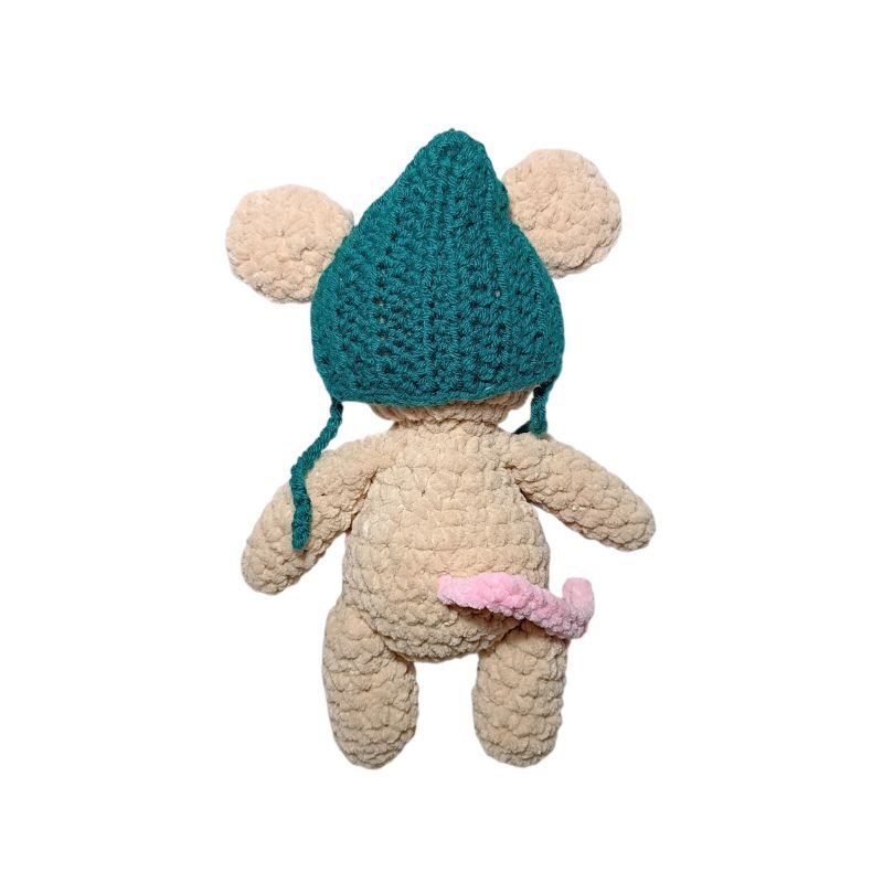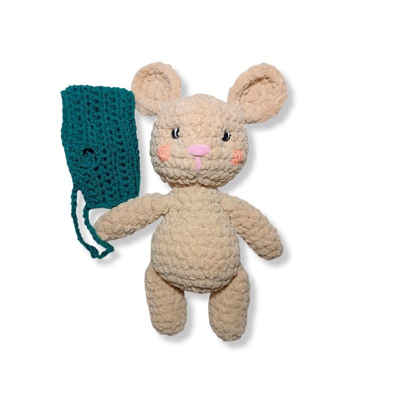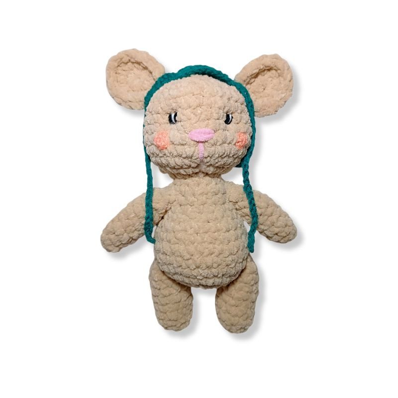 Χειροποίητο πλεκτό βελούδινο ποντίκι με πετρόλ σκουφάκι