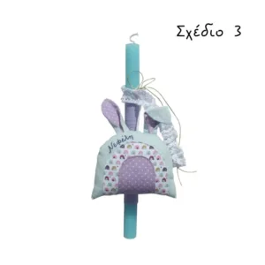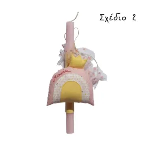 Πασχαλινή λαμπάδα για κορίτσια διακοσμημένη με χειροποίητο υφασμάτινο ουράνιο τόξο με το όνομα του παιδιού – ένα όμορφο διακοσμητικό για το παιδικό δωμάτιο.
