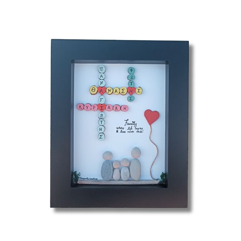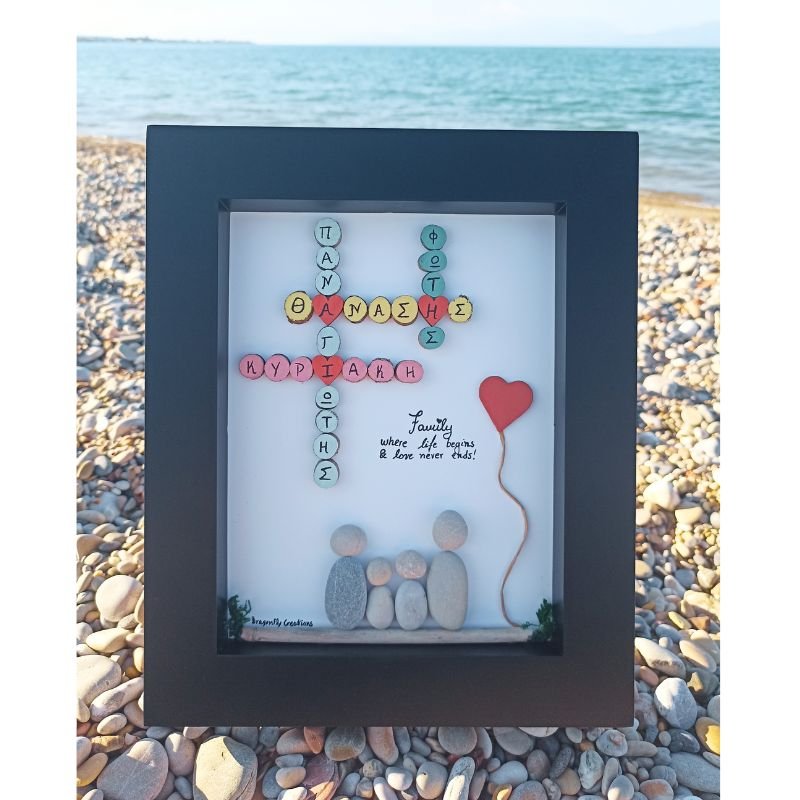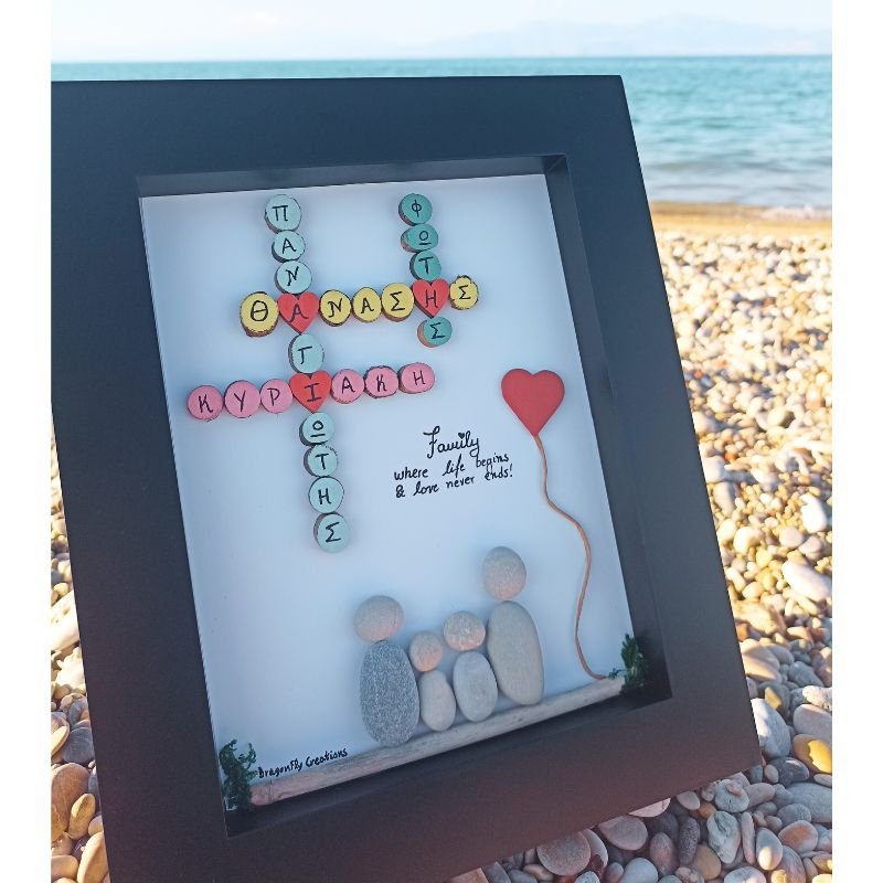 Προσωποποιημένο καδράκι Pebble Art – Οικογένεια με ονόματα σε μορφή σταυρόλεξου