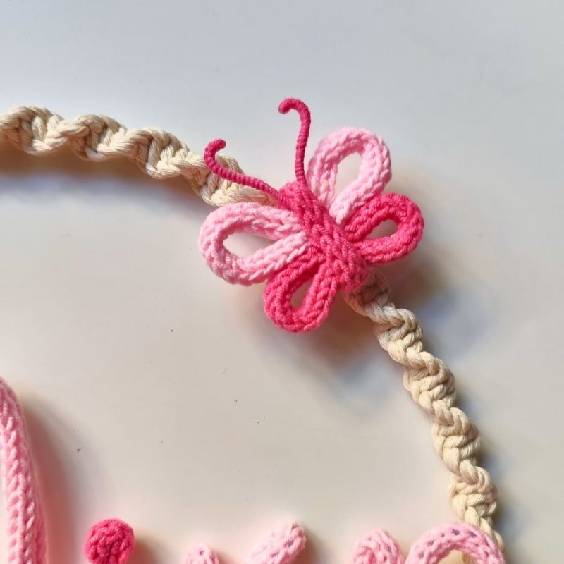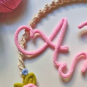 •Με μακραμέ από βαμβακερό νήμα και διακόσμηση από βαμβακερό – ακρυλικό νήμα.