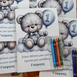 Όμορφο τετράδιο ζωγραφικής με 12 χρωμοσελίδες και 4 κηρομπογιές ή μαρκαδόρους! Ιδανικό δωράκι για παιδικό πάρτι, που θα ενθουσιάσει κάθε μικρό καλλιτέχνη.