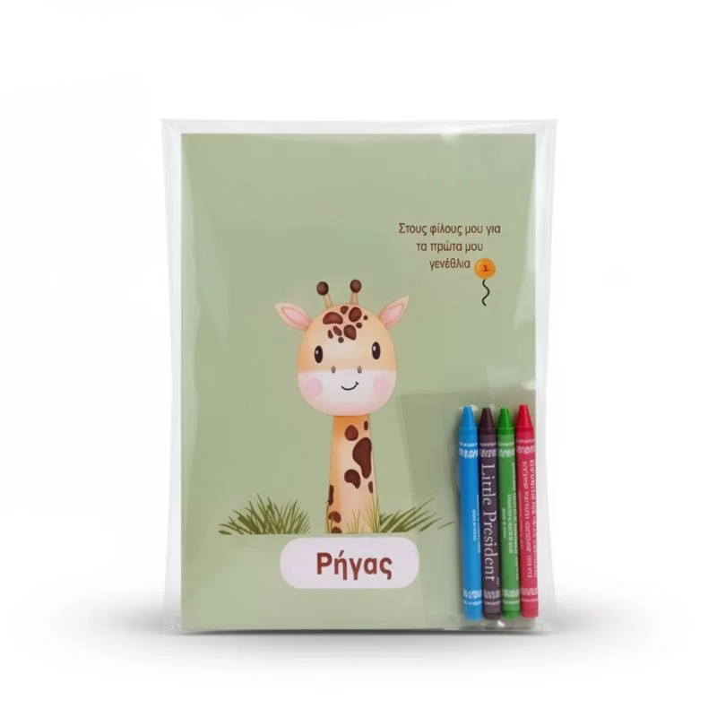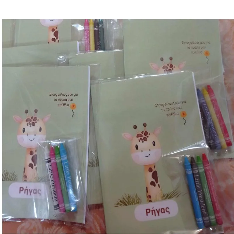 Προσωποποιημένο τετράδιο ζωγραφικής με 12 χρωμοσελίδες και 4 κηρομπογιές  ή μαρκαδόρους.