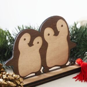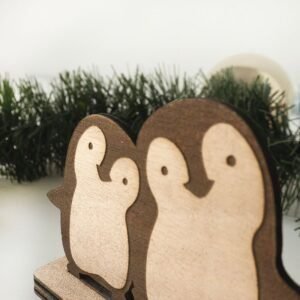 Προσωποποιημένο ξύλινο γούρι 2025 – ζευγάρι πιγκουίνων