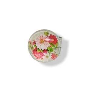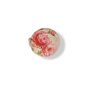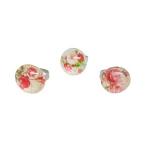 Ρομαντικό δαχτυλίδι από ασημί ατσάλι με υγρό γυαλί, διακοσμημένο με φλοράλ μοτίβα που θυμίζουν παλιές καρτ ποστάλ και ιστορίες αγάπης.