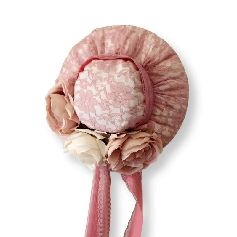 Ένα υπέροχο, ρομαντικό διακοσμητικό καπέλο διαμέτρου 25 εκ., φτιαγμένο με φροντίδα και αισθητική εποχής. Το λευκό ύφασμα ντύνει απαλά τη βάση, ενώ λεπτομέρειες από φίνα δαντέλα και κορδέλα σε απόχρωση σάπιου μήλου προσθέτουν νοσταλγική κομψότητα και θηλυκή χάρη.