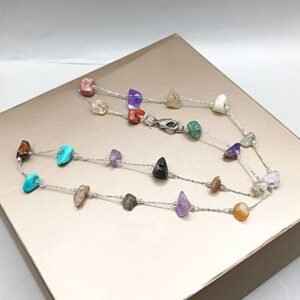 Ατσάλινη αλυσίδα 45εκ, με ημιπολύτιμους λίθους τσιπς αχάτη, τυρκουάζ, χαολίτη, αμέθυστου, αβεντουρίνης.