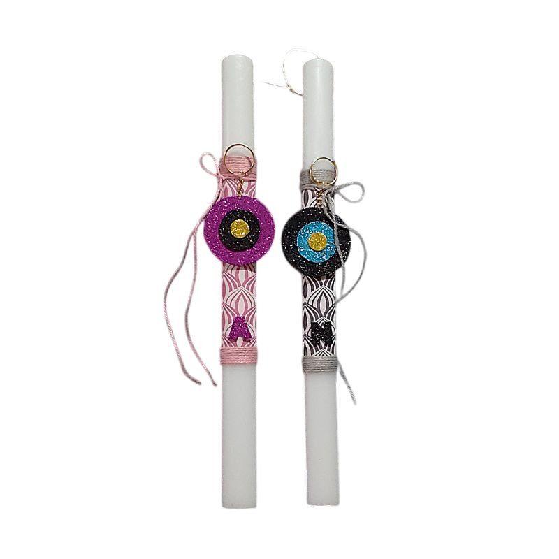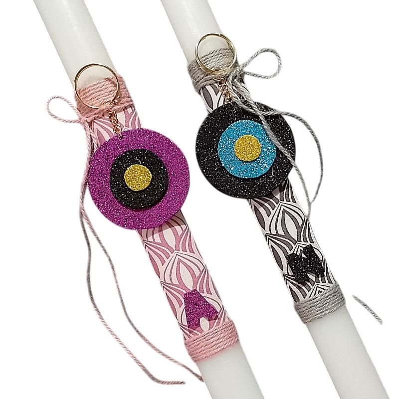 Σετ λαμπάδες ενηλίκων με μπρελόκ μάτι και μονόγραμμα, για ζευγάρια με χειροποίητα μπρελόκ μάτι και το μονόγραμμα τους.