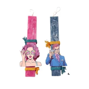 Χειροποίητες αρωματικές λαμπάδες 25 εκ. με ξύλινο διακοσμητικό μαγνητάκι 9εκ.