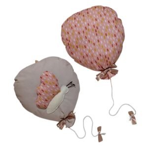 Σετ 2 τεμ.- Χειροποίητα κρεμαστά Διακοσμητικά Μπαλόνια από 100% βαμβακερό ύφασμα ελεγμένο και πιστοποιημένο για βλαβερές ουσίες Oeko-Tex με υποαλλεργική γέμιση/ Το ένα είναι σε μπεζ χρώμα με τρισδιάστατη πεταλούδα και το άλλο σε ροζ-σομον.