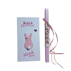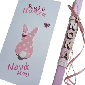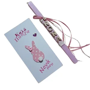 Σετ 2 τμχ ΝΟΝΑ – Λαμπάδα τετράγωνη ροζ ξυστή & κάρτα Καλό Πάσχα