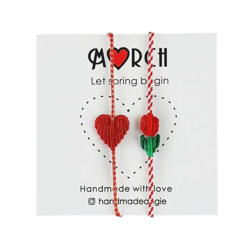 Σετ 2τμχ χειροποίητα μακραμέ μαρτάκια μίνι καρδούλα & τουλίπα σε χρώμα κόκκινο.