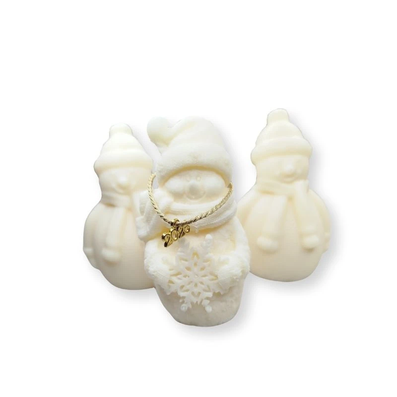 Σετ από 3 αρωματικά κεριά σε σχήμα χιονάνθρωπων, από τα οποία ο ένας έχει επίχρυσο γούρι 2026 στο λαιμό του.