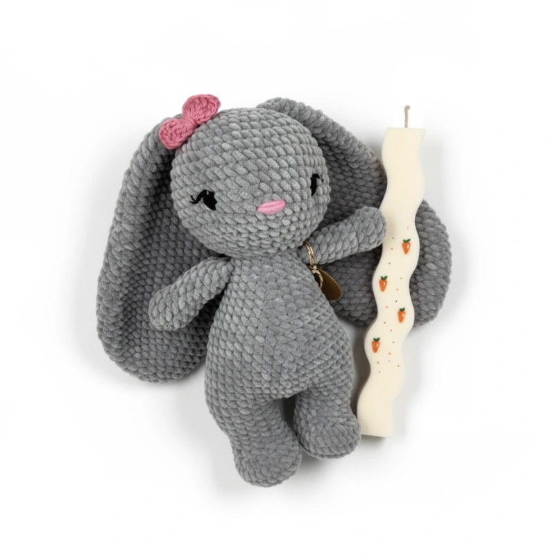 Το λαγουδάκι μπορεί να πλυθεί στο χέρι ή και στο πλυντήριο σε χαμηλή θερμοκρασία και πρόγραμμα για ευαίσθητα. Αφήστε το να στεγνώσει σε οριζόντια θέση.