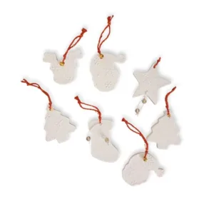 Κάθε σετ περιέχει 2 τεμάχια, με τυχαίο συνδυασμό ανάμεσα σε: Αϊ-Βασίλη, αγγελάκι, μπότα, αστεράκι, ταρανδάκι, μπισκοτάκι και δεντράκι.