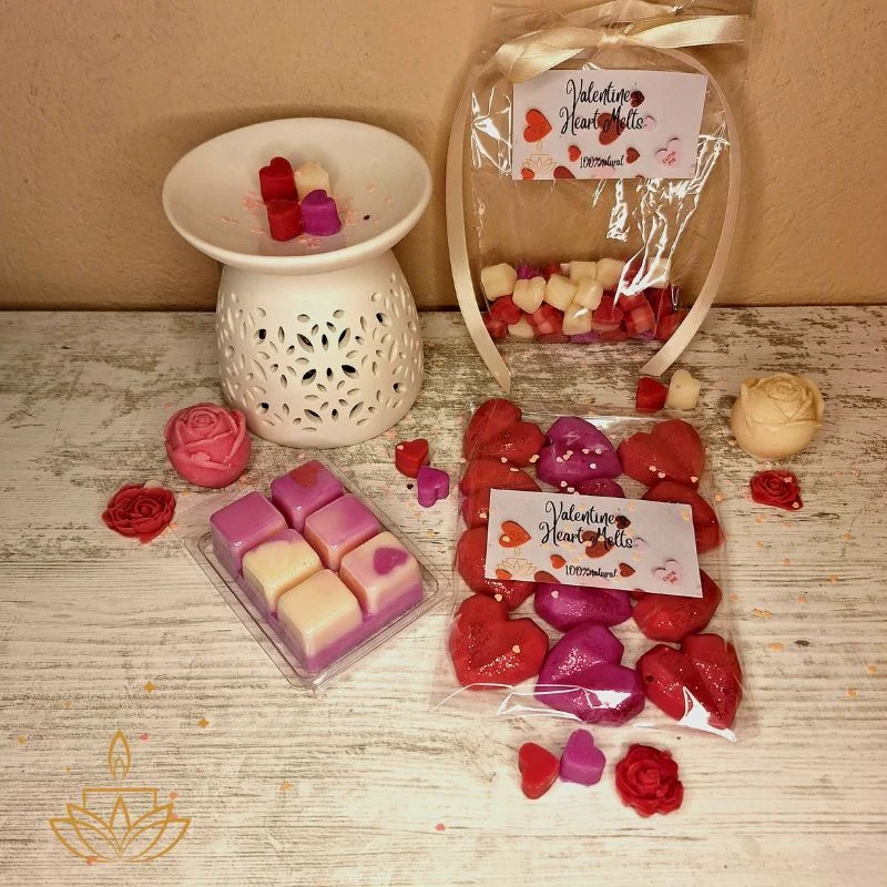 - 12 wax melts σε σχήμα καρδιάς των 80γραμμαρίων