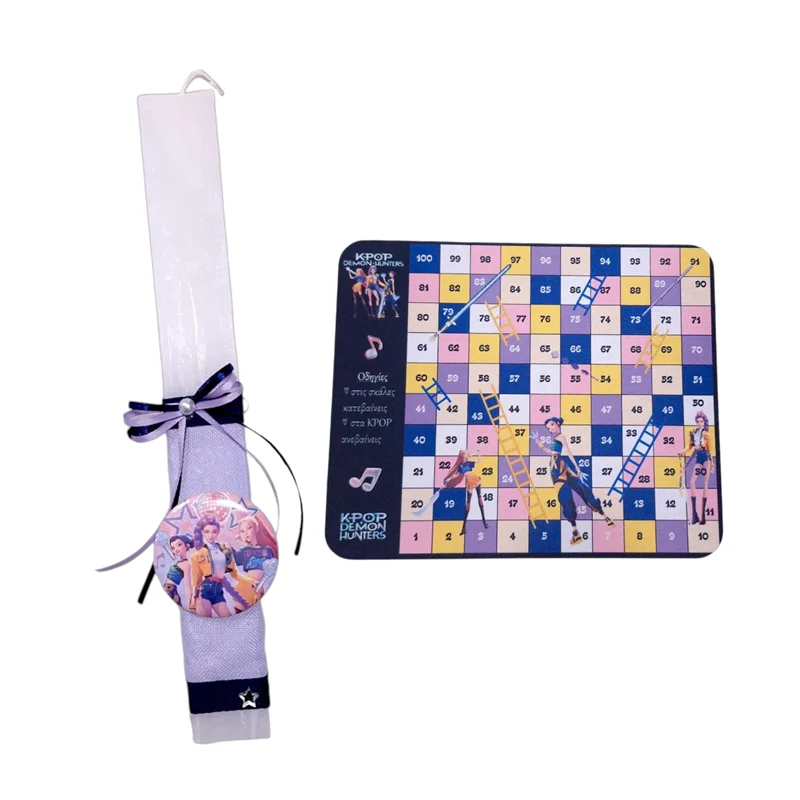Όλα όσα χρειάζεται μια Huntrix fan σε ένα πακέτο! Χειροποίητη πασχαλινή λαμπάδα και αξεσουάρ που ξεχωρίζουν. Επέλεξε το δικό σου αγαπημένο σετ: