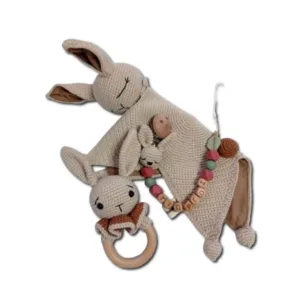2) Κλιπ πιπίλας με πλεκτά στοιχεία και ασορτί χαντρούλες (Μπορεί να προστεθεί και ονοματάκι)