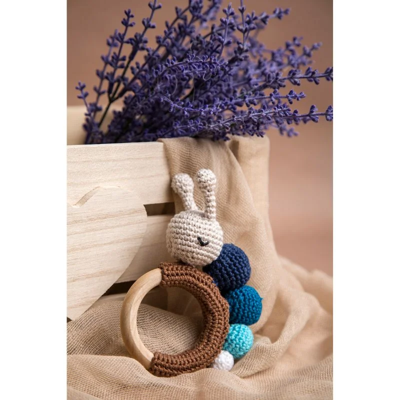 Η πλεκτή κουδουνίστρα με την χαριτωμένη κάμπια και τον ξύλινο κρίκο είναι εύκολη στο κράτημα από μικρά χεράκια, ενώ ο απαλός ήχος της διεγείρει τις αισθήσεις και προσφέρει στιγμές χαλάρωσης και παιχνιδιού. Τα κεντητά χαρακτηριστικά της την καθιστούν απόλυτα ασφαλή για μωρά.