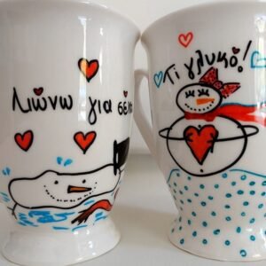 Σετ 2 Κούπες ζωγραφισμένες στο χέρι με ανεξίτηλα χρώματα.